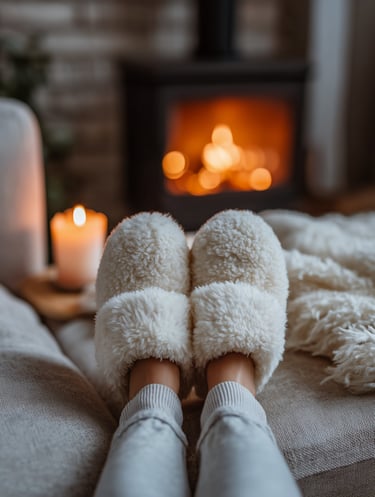 Warm, comforting picks like blankets, slippers, robes, candles, and home spa essentials.